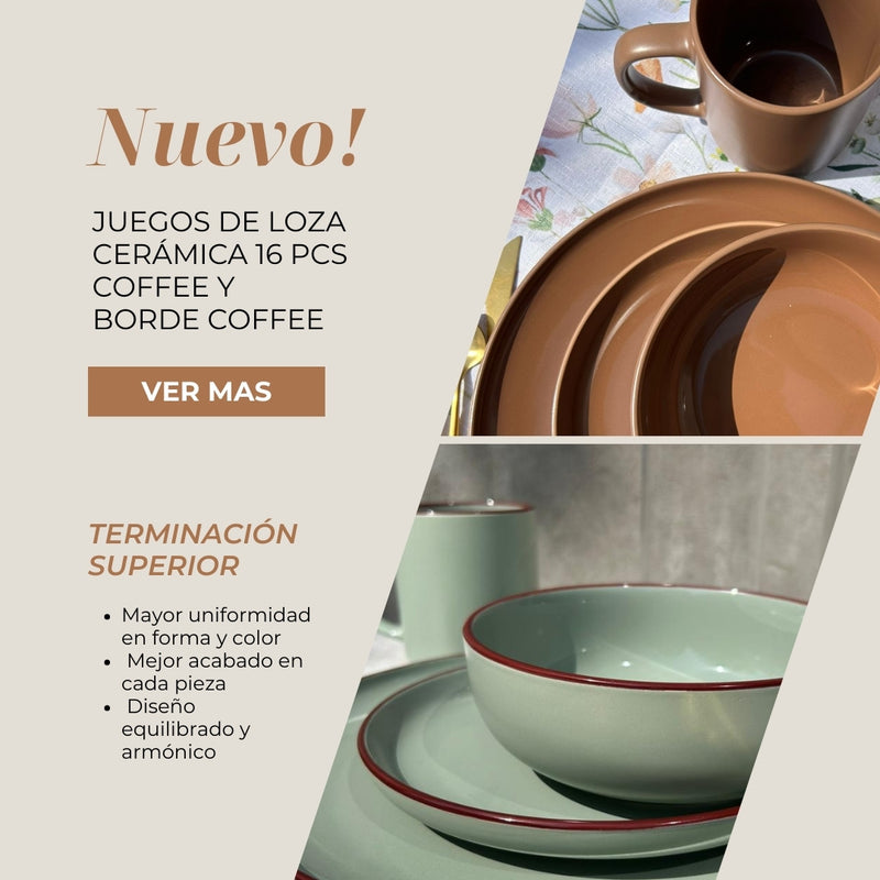 Juego de loza 16 piezas Vajilla Cerámica Borde Coffee
