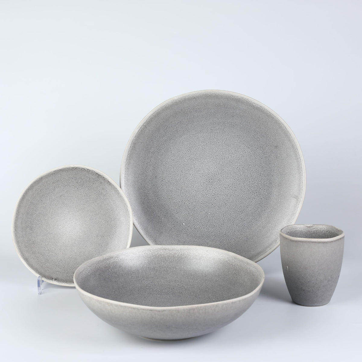 Con una estética artesanal moderna, el set de loza Skadar transforma tu mesa en una experiencia sensorial. Su acabado craquelado en tonos gris piedra aporta textura visual y un diseño que destaca por su originalidad. Cada pieza es única e ideal para quienes buscan un estilo auténtico y natural en su vajilla.