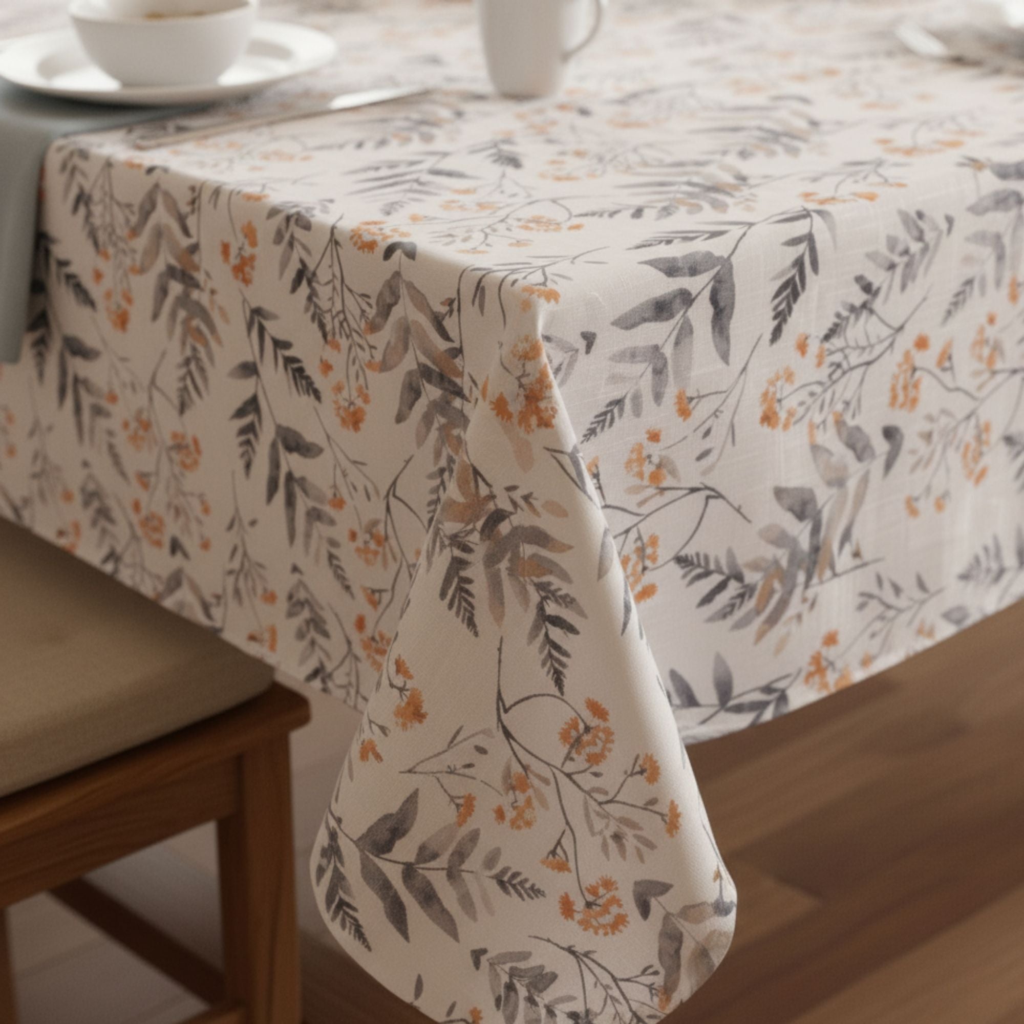 Mantel antimanchas de poliéster con estampado floral, diseñado para proteger y embellecer mesas pequeñas; su tejido repelente facilita la limpieza de derrames con un paño húmedo y mantiene los colores vivos con uso cotidiano. Ideal para cenas informales o uso diario, aporta un toque fresco y práctico a tu comedor sin complicaciones.
