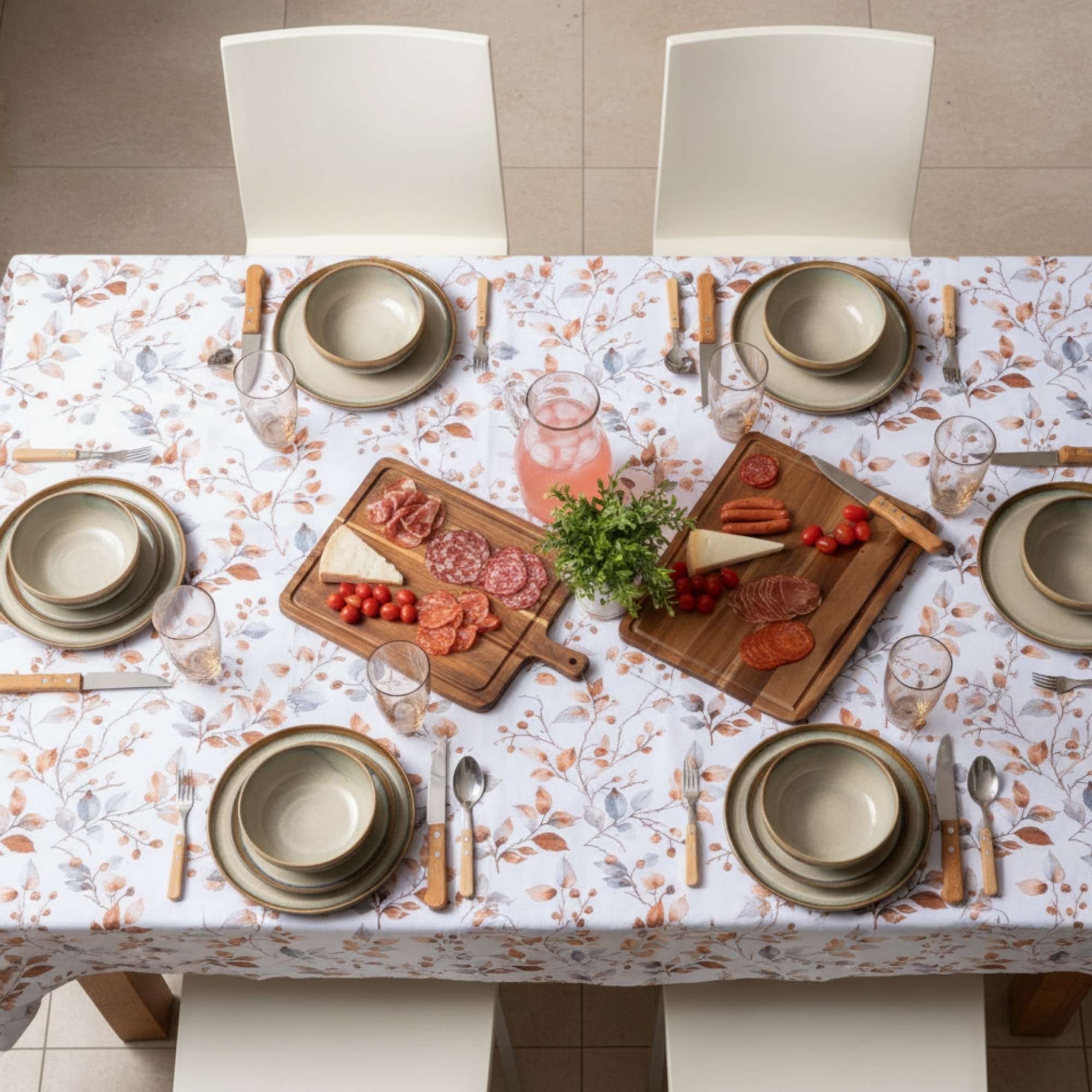 Con su diseño Silvestre en poliéster y tratamiento antimanchas, este mantel es ideal para mesas medianas: protege contra líquidos, se limpia con facilidad y ofrece una presentación acogedora para comidas y reuniones. Su patrón orgánico añade carácter sin sacrificar funcionalidad, convirtiéndolo en una elección versátil para el hogar.