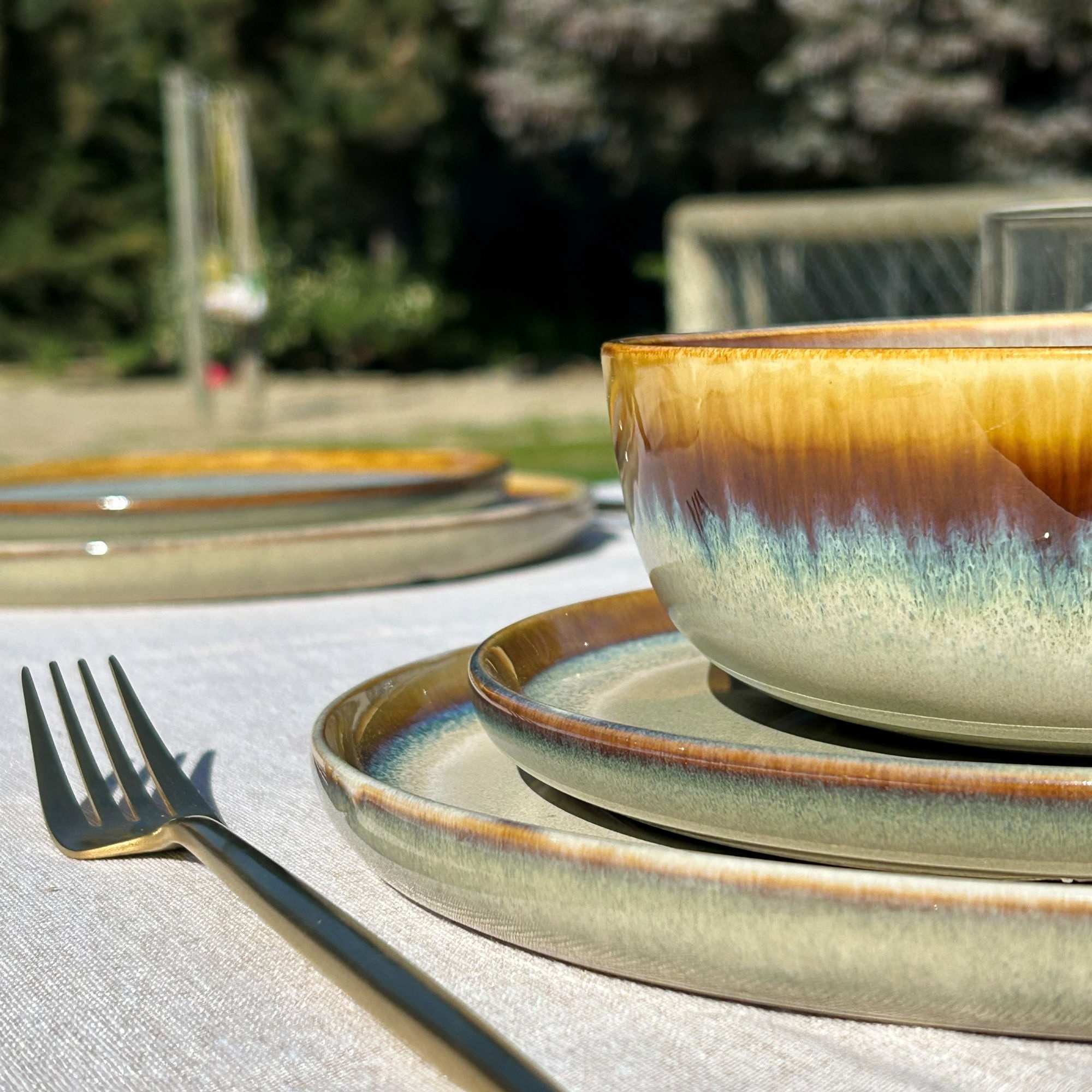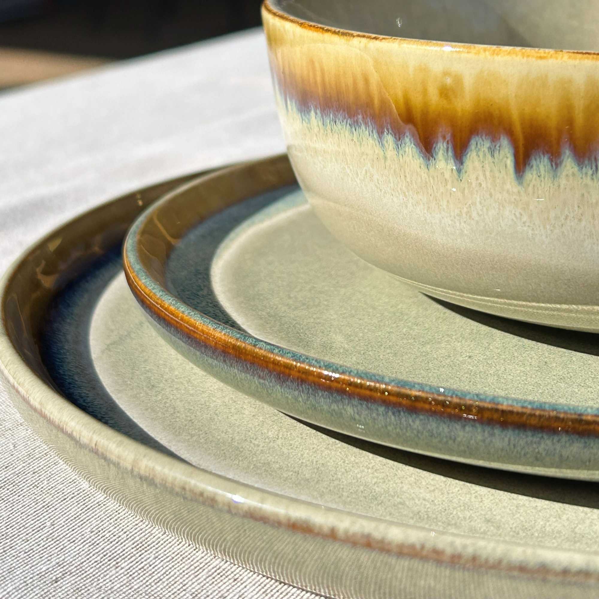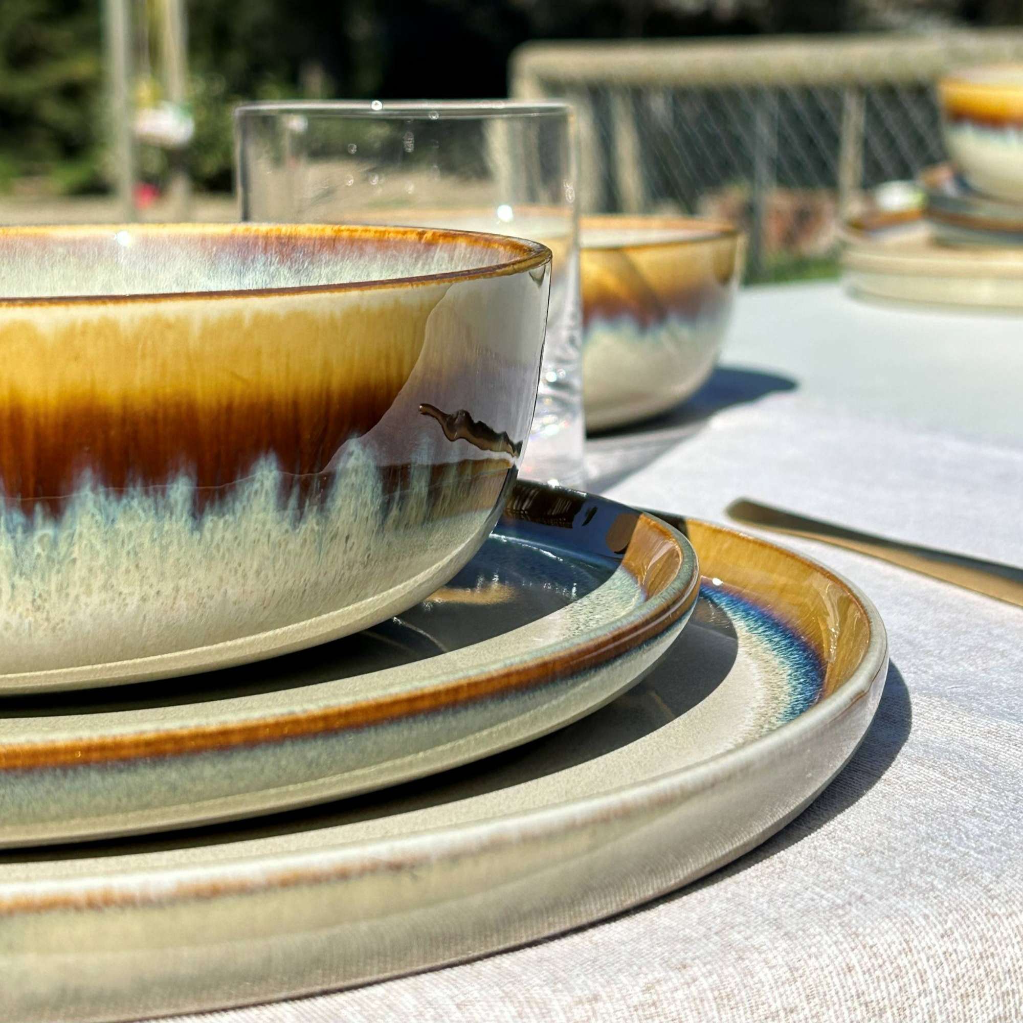 Descubre la elegancia atemporal con el juego de loza cerámica Lisboa de 18 piezas, una colección artesanal diseñada para transformar cada comida en una experiencia memorable. Su acabado esmaltado con bordes rústicos y sutiles degradados únicos en cada pieza evocan la esencia del Mediterráneo y la calidez del hogar.