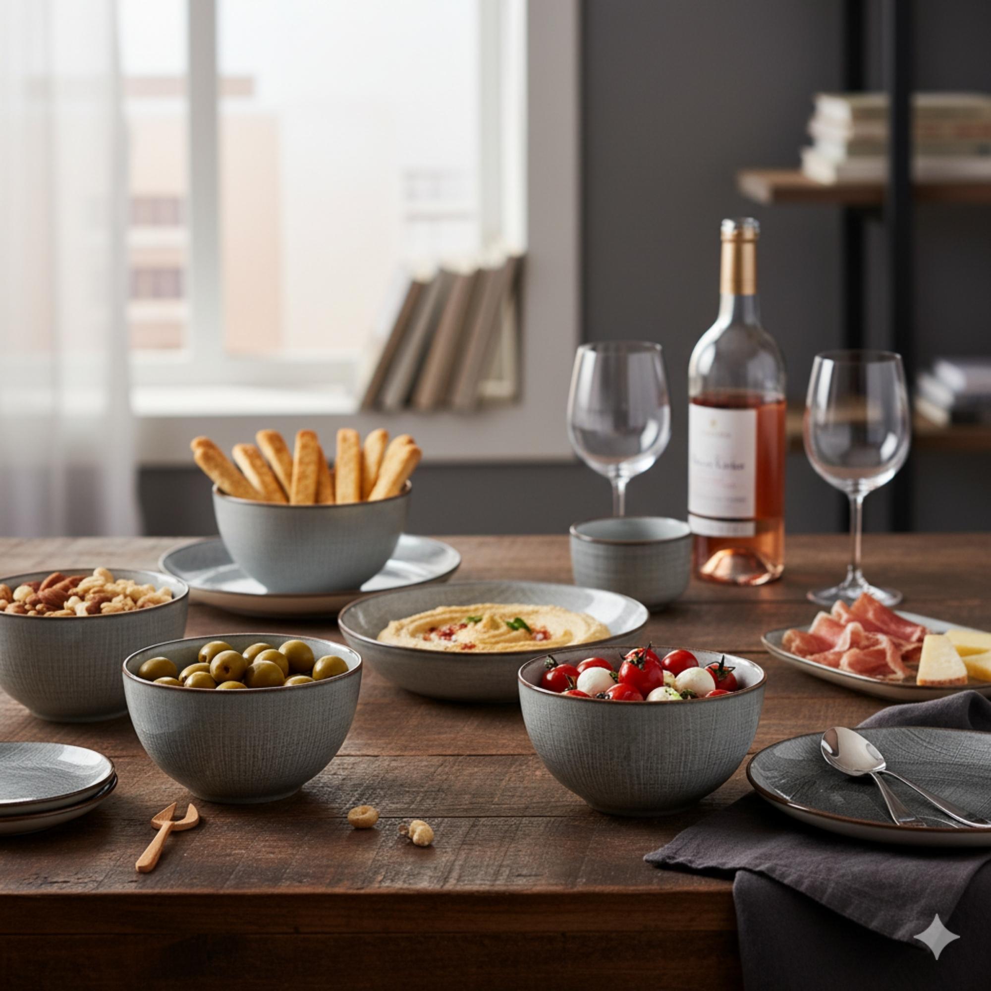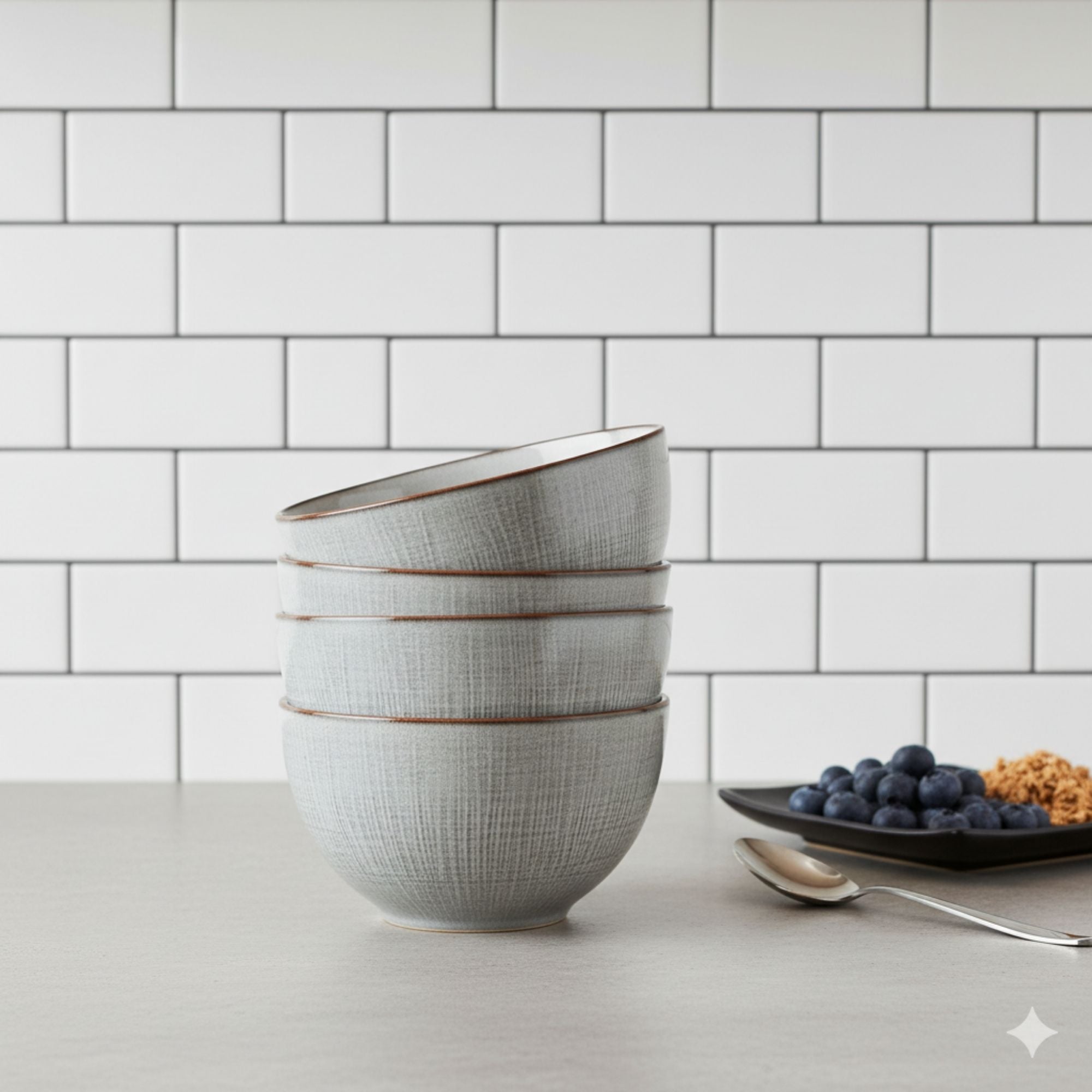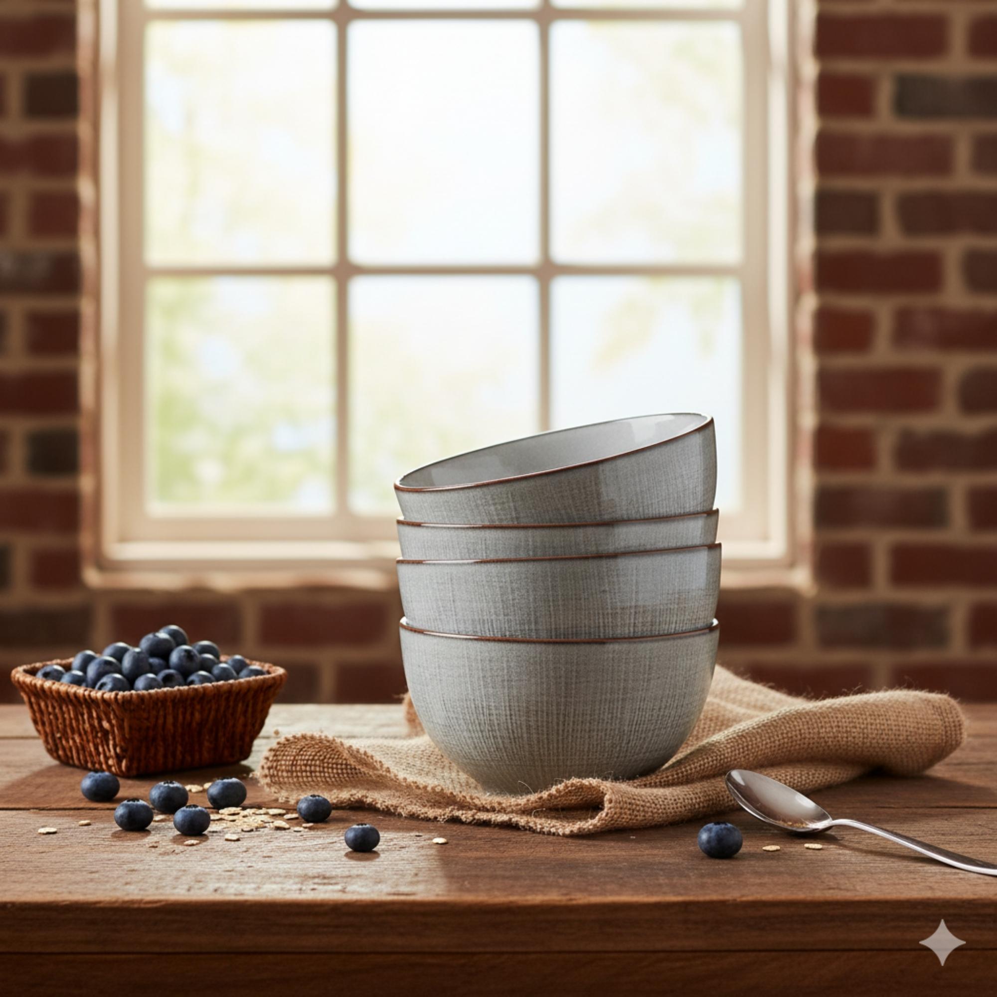 Inspira tus comidas con el Set 4 Bowls Cerámica Viena, una colección que combina elegancia y sencillez en cada detalle. Su tono gris con textura lineal y borde café crea un efecto natural y contemporáneo, ideal para acompañar cualquier tipo de mesa. Perfectos para servir desayunos, ensaladas o snacks con estilo.