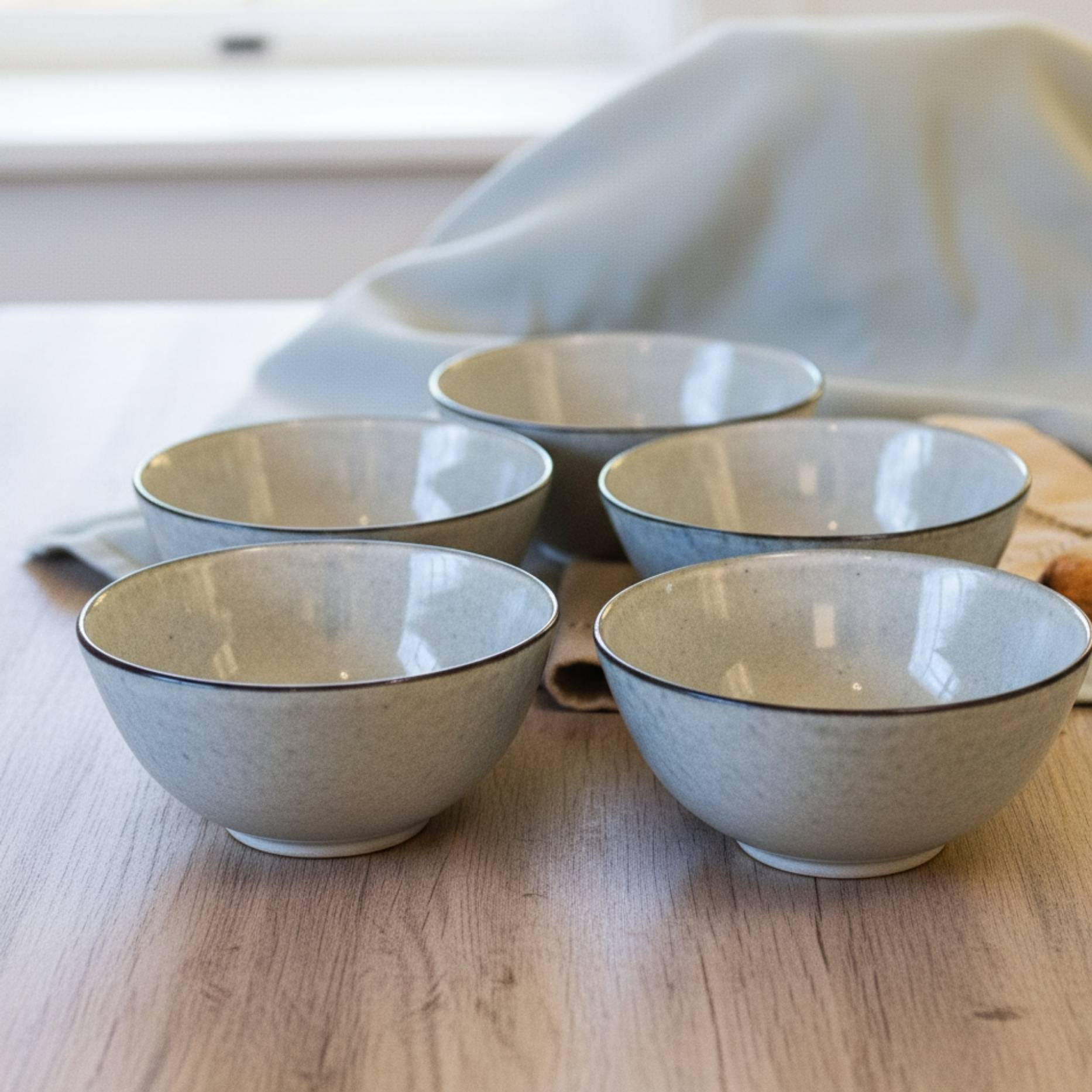 El Set 4 Bowls Cerámica Beirut destaca por su diseño elegante y natural. Su acabado esmaltado en tono gris piedra con borde oscuro aporta un estilo contemporáneo que combina fácilmente con cualquier mesa. Hechos a mano, cada bowl posee detalles únicos que reflejan la calidez del trabajo artesanal.