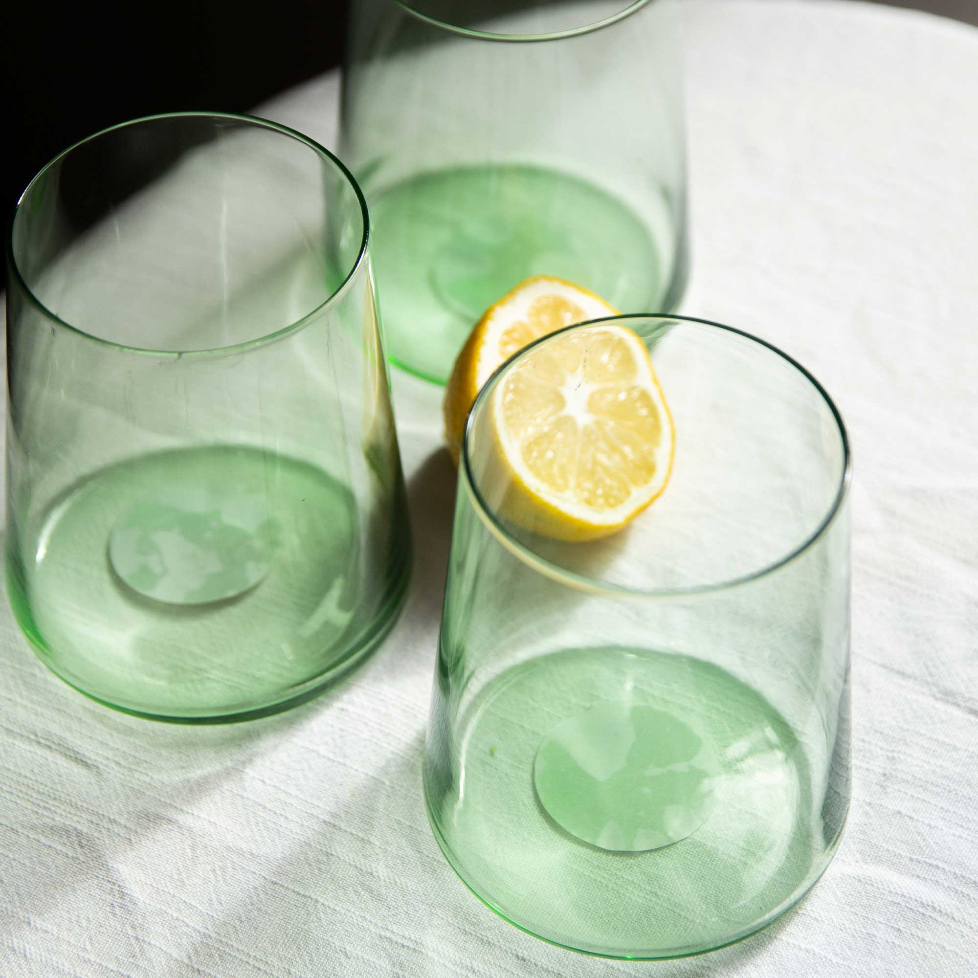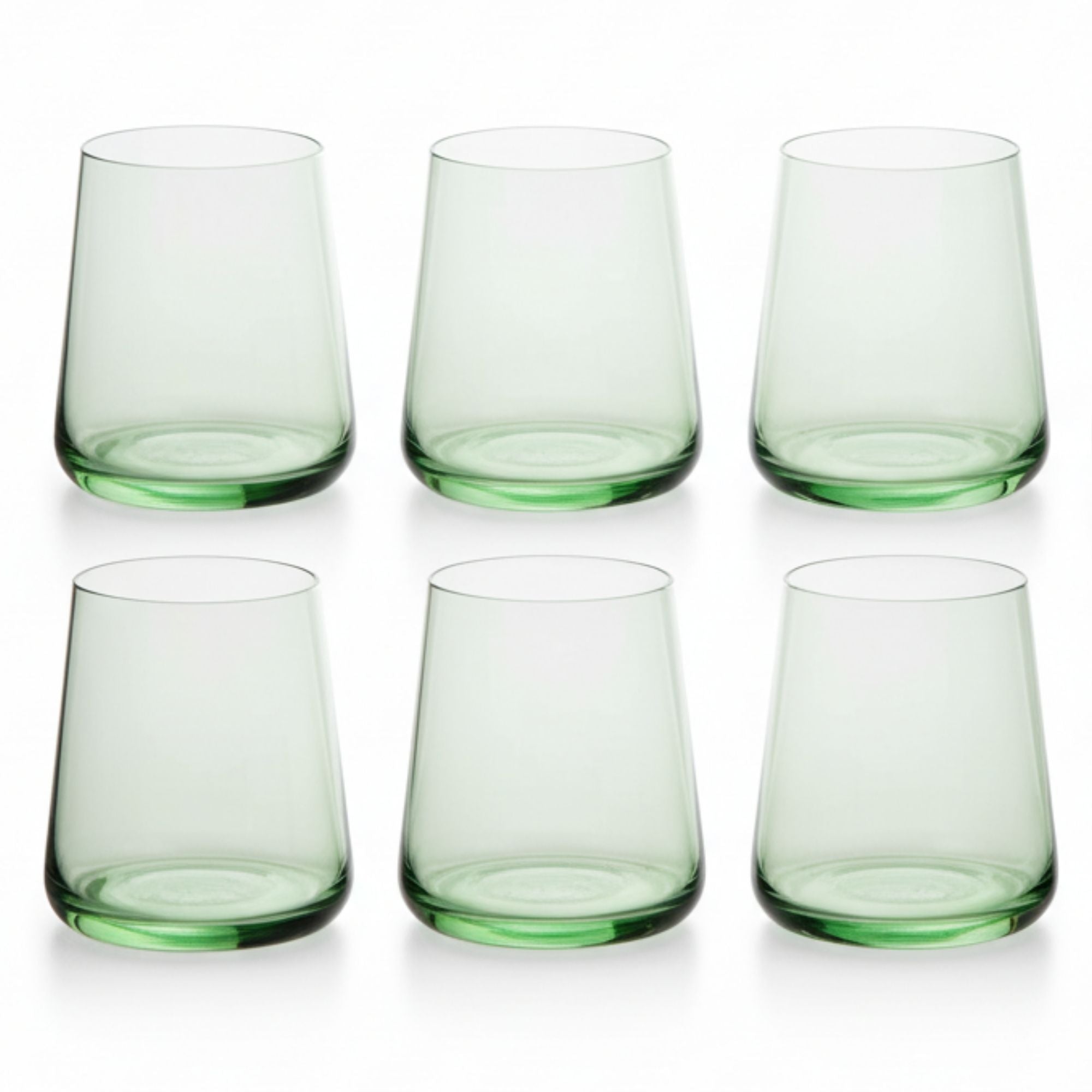 Disfruta de la frescura y el estilo con el set de 6 vasos Verona en color verde. Estos vasos, fabricados con vidrio tinturado en masa, están diseñados para resistir el uso diario manteniendo su elegancia intacta. Con una capacidad de 420 ml, son ideales para servir cualquier tipo de bebida. Su diseño contemporáneo y su vibrante color verde aportan un toque de modernidad y frescura a tu mesa, haciéndolos ideales para cualquier ocasión especial.