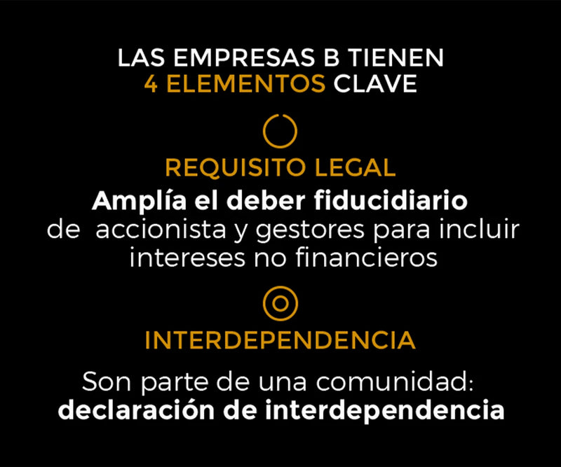 Todas las Empresas B miden su impacto social y ambiental y se comprometen de forma personal, institucional y legal a tomar decisiones considerando las consecuencias de sus acciones a largo plazo en la comunidad y el medioambiente.